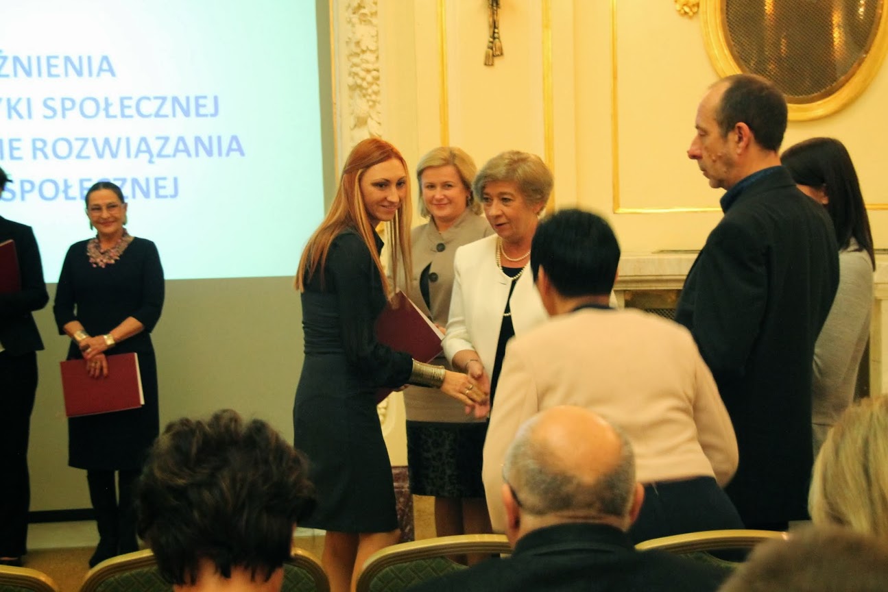 Nagroda Ministra Pracy i Polityki Społecznej za wybitne nowatorskie rozwiązania w zakresie pomocy społecznej w roku 2013r. dla Moniki Witkowskiej-Kubas